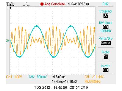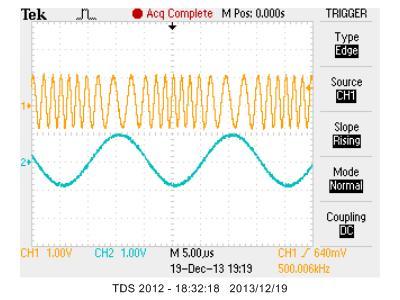 1.AM (キャリヤ:500KHz, AM周波数:50KHz, Deviation:80%)